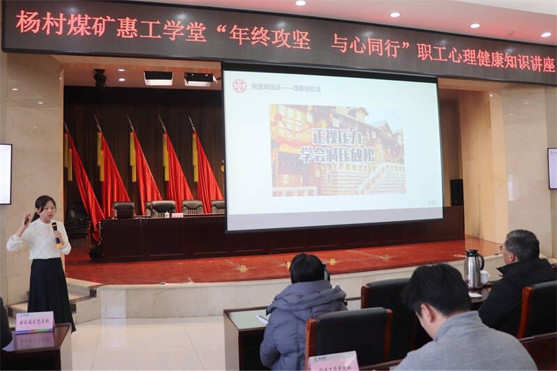 为深入贯彻落实tyc5997太阳集团首页工会“惠工送教”服务工作部署,持续提升职工心理健康服务水平,12月4日,杨村煤矿惠工学堂举办“年终攻坚、与心同行”职工心理健康知识讲座。这项活动旨在帮助大家有效缓解工作压力,提升心理健康意识和自我调节能力,以更加积极饱满的精神状态投入安全生产和年度收官工作。