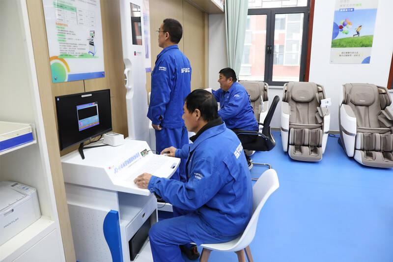 健康驿站正式运营后,将配备专业人员常驻服务,聚焦职工健康需求,提供全方位健康保障。对于高血压、糖尿病等慢性病患者,定期检查、测量指标,提供个性化用药指导和生活方式建议,生成专属健康数据,开展全年健康追踪,帮助职工科学管控病情,实现慢性病精准防治。除了常规的健康监测项目,驿站还设置了心脏血管功能检测、精神压力分析、智能身心减压调养及中频理疗等特色服务,职工工作间隙就能来做一次理疗按摩、测一次精神压力,及时缓解工作疲劳,调整身心状态。