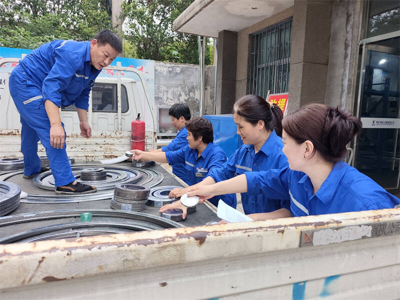 管进度,老冯也有绝活。他弄了个“订单优先级表”,交货期、难度系数标得明明白白,每天晨会就对着表“算账”。今年六月,天热得像个大蒸笼,车间里温度近40度,这时多家化工单位进入大修关键期,15000多件垫片压过来,还都是急茬。老冯二话不说,带着大伙扎在垫片车间。汗水顺着下巴滴在机器上,后背的工装湿了又干,结出一层白花花的盐渍。手上的茧子磨破了,贴块创可贴继续干。最后不仅按时交了货,还创下了月度产量新高。