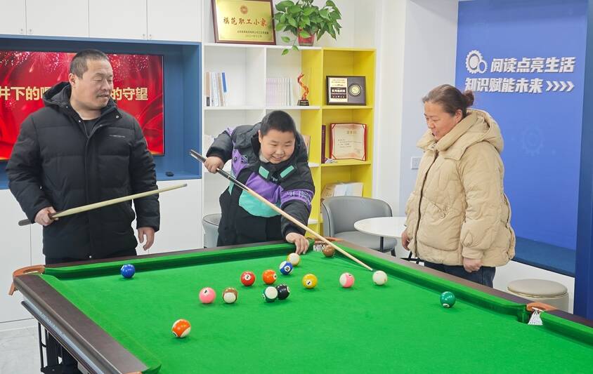 活动现场温馨而和谐,亲子台球体验环节成为一大亮点。职工们手把手教导孩子握杆、瞄准、击球,台球撞击声伴随着欢声笑语,不仅让孩子们感受到陪伴的温暖,更让职工对家庭责任有了更深理解。