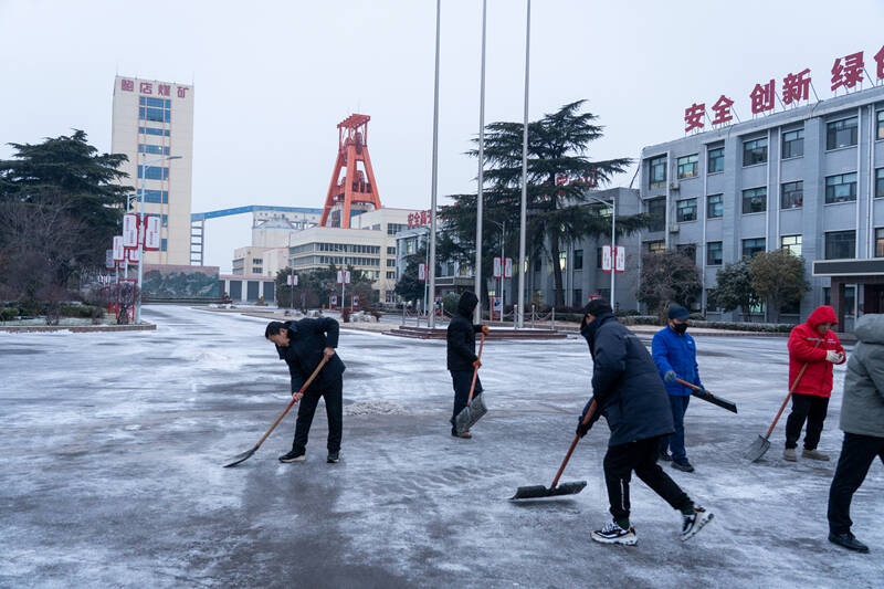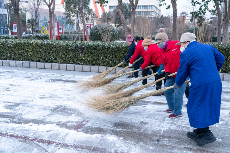 19日清晨五点,该矿第一时间作出安排部署,明确清雪重点和责任分工,迅速集结三防应急队伍和相关单位职工。六点,大家手持铁锹、扫帚,驾驶铲车,奔赴作业现场,对矿工广区关键区域展开全面清扫。严寒之中,他们顶风冒雪挥舞着工具,脚下的积雪在铁锹与扫帚的作用下不断被推移、聚拢。铁锹碰撞地面的“咔嚓”声、扫帚摩擦积雪的“簌簌”声与呼号声交织在一起,奏响了冬日里最动人的劳动乐章。早上七点半,在大家的共同努力下,一条条被积雪覆盖的道路逐渐露出原本面貌,路面恢复干净整洁。这场与风雪的较量,彰显了鲍店人迎难而上、团结协作的精神风貌。